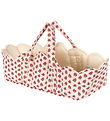 The Konges Sløjd shopping cart has four wheels, a smart handle and a nice seat so the doll can come out and shop. There is a nice cushion at the bottom so the soft toys can come along too.