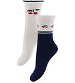 Stylish Konges Sløjd socks in a 2-Pack with one pair in brown and one pair in beige with striped details and contrasting colors at the heel and toe. The Konges Sløjd socks have a ribbed structure and a narrow ribbed edge at the top, which provides a secure fit.