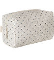 Practical Konges Sløjd toiletry bag in a light off white colour with a stylish stripe and dot design. The Toiletry bag has a quilted structure and has a light and spacious shape that makes it easy to organize your essentials. The Toiletry bag is also water repellent with Bionic Finish Eco, which further makes it good for all everyday things.