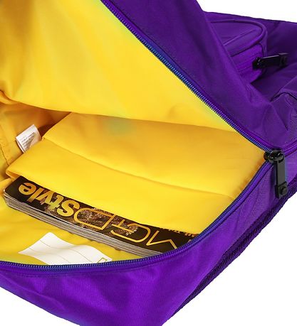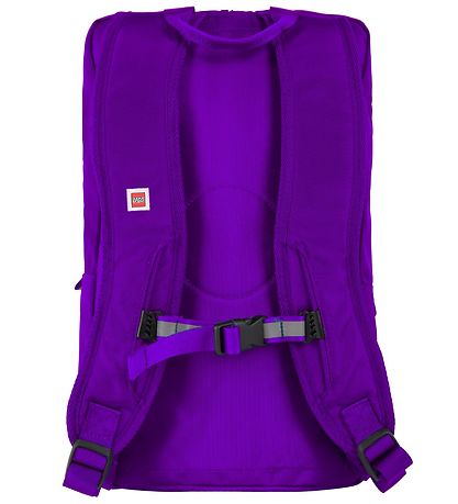 Lovely LEGO® school backbag in purple shaped like a large LEGO® brick. On the left side there is an embroidered logo, and on all four sides there are practical reflectors.
