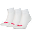 Fine Levis ankle socks consisting of a pair in white with two black lines around the opening, between the black lines "Levis" can be seen in black on white. The other pair is in opposite colours. They are sold in a 2-Pack.