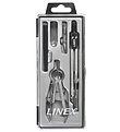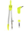 Smart Linex bow compass consisting of a needle point with hinges on both legs, felt-tip pen insert and case with extra lead and spare parts. It all comes in a practical box with a transparent lid so the parts do not not get separated.