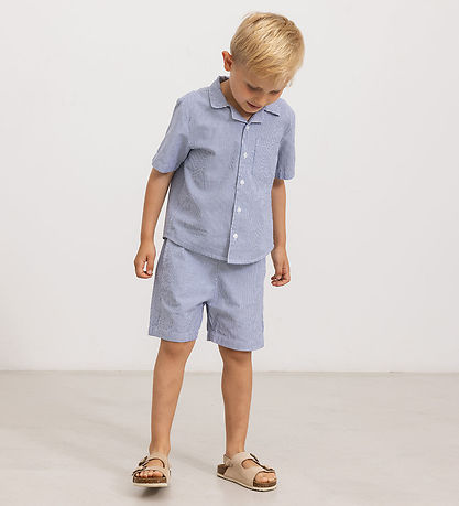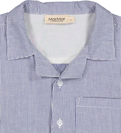 Elegant MarMar shirt with short sleeves in a classic striped blue and white. The Shirt has a practical chest pocket and button closure at the front, which gives a nice and stylish look to any wardrobe.