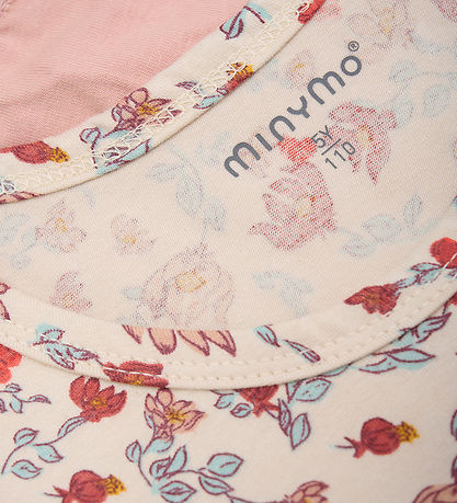 Comfortable Minymo underwear with a sleeveless undershirt in cream with a colorful floral print and matching knickers in pale pink. Detailed and stylish solution from Minymo for a comfortable everyday experience.