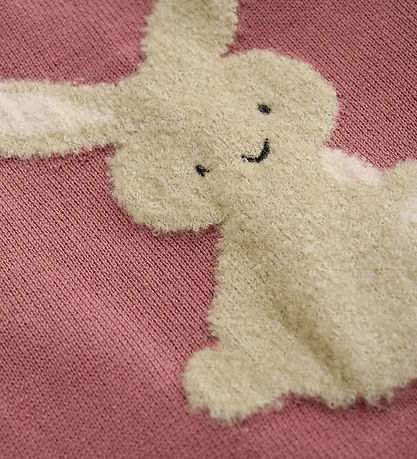 Beautiful Minymo waistcoat in a deep pink colour. On the front you can see a large, fine rabbit motif. The Waistcoat from Minymo has a button closure at the shoulder for easy dressing.