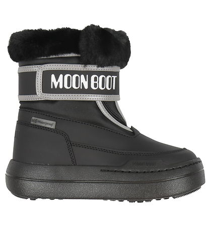 Cool Moon Boot winter boots in black textile and imitation leather, and around the shaft it says "Moon Boot" in white and there are reflective edges.