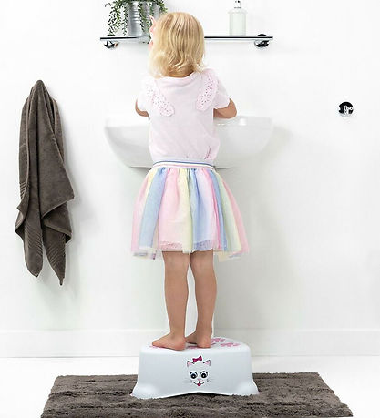 The My Carry Potty stool is a perfect child size and helps kids reach the sink and toilet themselves, which can ease the transition from potty to toilet.