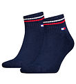 Stylish Tommy Hilfiger socks sold in a 2-Pack. One pair in a light grey shade with the classic logo on the shaft and one pair in grey with white stripes and a black ribbed top. The Socks have a simple yet stylish design that makes them ideal for any wardrobe.