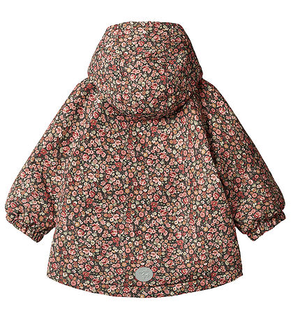 Adorable Wheat winter coat in charcoal grey with an allover floral print in pink, red, yellow and green shades