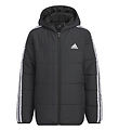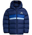 The adidas Performance duvet jacket has a removable hood that is fastened with push buttons around the collar. The duvet jacket has hidden edges. The duvet jacket opens at the front using a zipper with chin guard. On the front there are two open pockets on the sides.