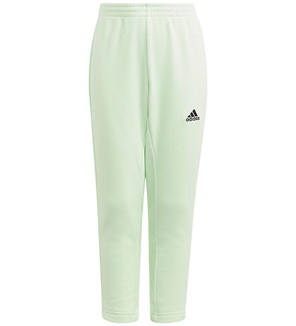 - The sweatpants are plain green, with an embroidered logo in black on the left thigh.
