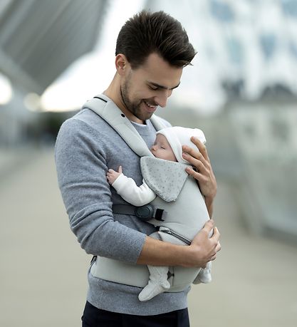 In front, the harness can be zipped up and the clips fastened with push buttons at two different heights, so that the baby can move its head freely. A pram sun shade with a UV filter of +50 is included, which can be clicked onto the carrier to protect the kid from the sun's rays, or it can protect the kid from external influences. Also included are wide shoulder pads that can be placed on the shoulder straps to provide extra comfort.