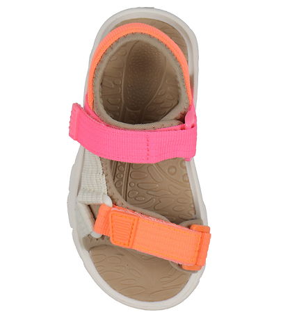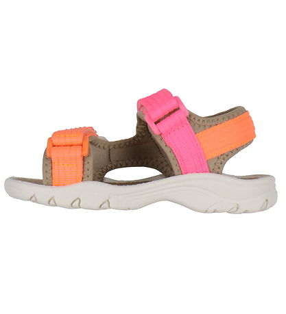 Beautiful Bisgaard sandals in brown textile with orange, white and pink details.