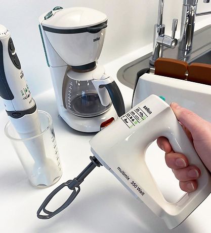 Braun toy toaster can easily be confused with the one your mom or dad has at home, and it allows the child to be integrated into the cooking in the kitchen. The two bread slices can be pressed into the toaster with the handle. The time can be adjusted with a button on the side of the toaster.
