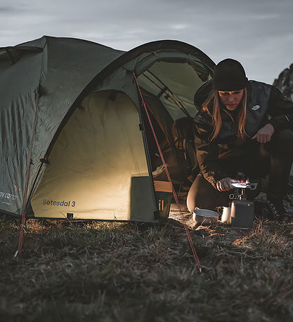 The Easy Camp tent has a sleeping cabin that sleeps three. It is made with an entrance area with a removable bottom, ventilation in the front and top, dark walls and ceiling that reduce light penetration and contribute to a good night's sleep, a storage pocket, a lantern strap, color coding on poles and pole channels and is easy to transport and pack down and suitable for many purposes.