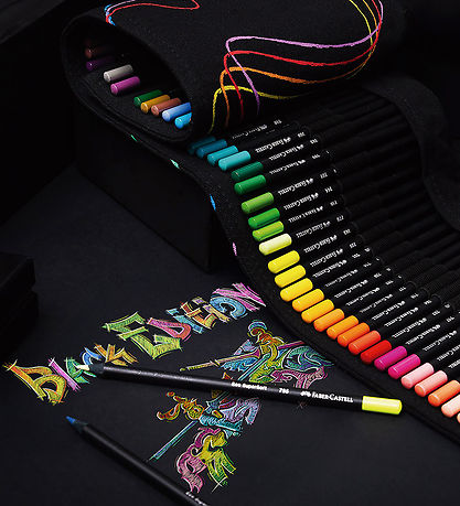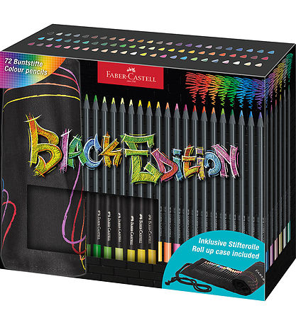Beautiful Faber-Castell black colouring pencils in a set of pcs in various colours, including pastel, neon and metallic. They also come with a rolling pencil case.