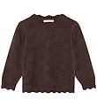 Elegant Fliink blouse in dark green brook and wave with a print of stripes and bows in bordeaux and pink. The Blouse has a round neckline with buttons at the neck. It has long balloon sleeves with elastic at the wrists. At the front there is a ruffle edge that extends from the left shoulder to the waist on the right side.