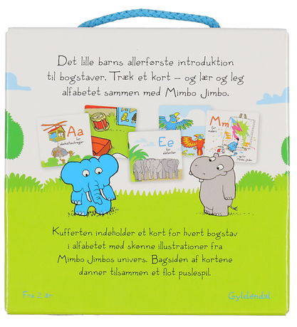 Gyldendal cardboard suitcase is the little child's very first introduction to letters. Pull a card - and learn and play the alphabet together with Mimbo Jimbo. The suitcase contains a card for each letter of the alphabet with beautiful illustrations from Mimbo Jimbo's universe. The back of the cards together form a beautiful jigsaw puzzle.