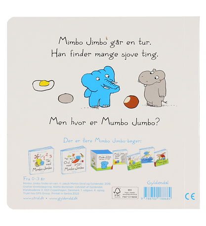 The Gyldendal book tells the story of Mimbo Jimbo who goes for a walk. He finds many funny things. But where is Mumbo Jumbo?