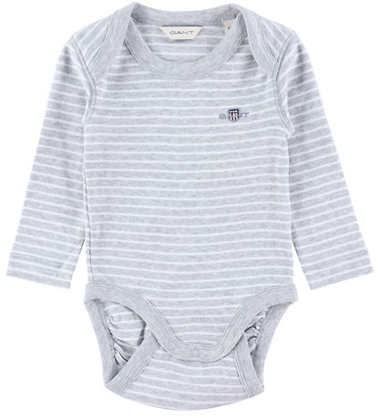 Nice GANT bodysuit in light, melange grey with narrow white stripes.