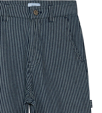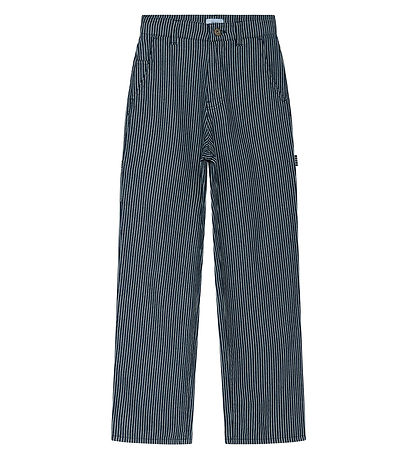 Smart Grunt trousers in navy with narrow, vertical stripes in white. The Trousers are made in a tightly woven quality.