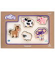 Fine HABA jigsaw puzzle shaped like a colourful tractor with farm animals. The Jigsaw puzzle consists of 6 bricks, each with a unique shape and must be placed in the corresponding holes. The green tractor and the included animal pieces make the game both fun and educational for the little ones.