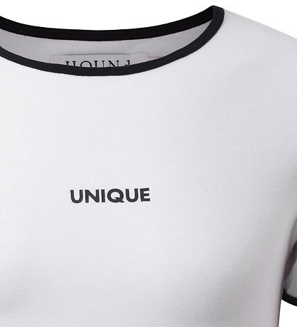 Nice Hound t-shirt in white with black edges, and on the front "Unique" is printed in black.