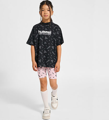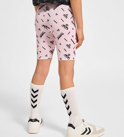 Attractive Hummel bicycle shorts in a bright pink colour with an all-over black Hummel logo print. The cycling shorts have a tight fit and an elastic waist, which provides good support. The Hummel cycling shorts stand out with their stylish and functional design.
