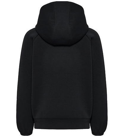 Stylish Hummel cardigan in black with the Hummel logo printed on the chest in white. The Cardigan has a practical hood and long sleeves, which are finished with ribbed edges. The Cardigan has a full-length zipper and open side pockets.