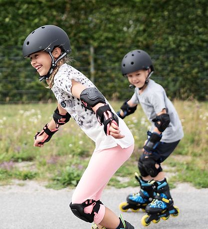 The helmet is suitable for use on a bicycle, skateboard or rollerskates.