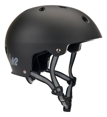 Smart K2 helmet in black with a brand with "K2 Varsity" on the back on the right side and "K2" on the front on the left side.