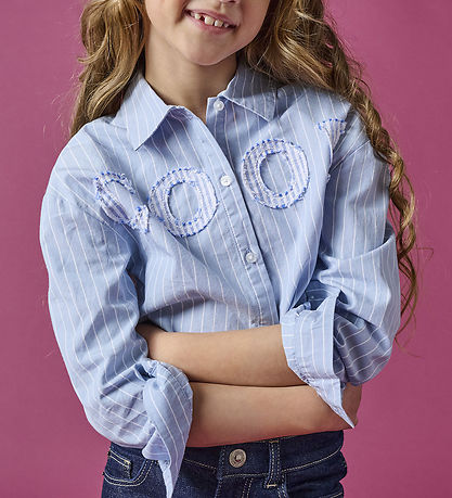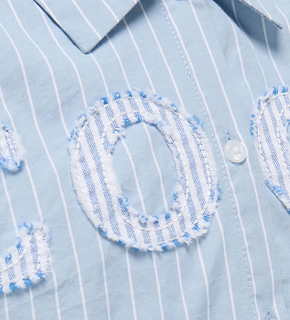 Nice shirt from Kids Only in a light blue shade with fine stripes. The Shirt has long sleeves and a large "COOL"print on the front that adds a fun element to any outfit.