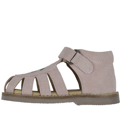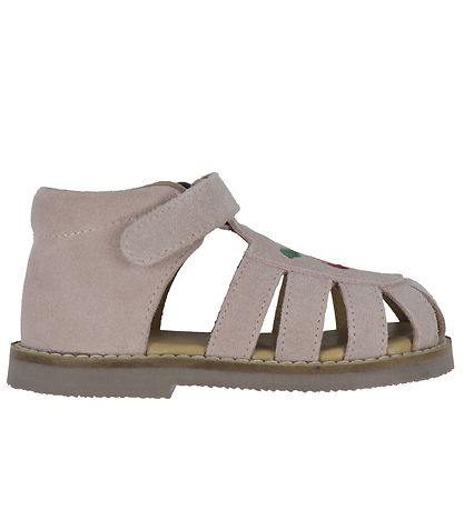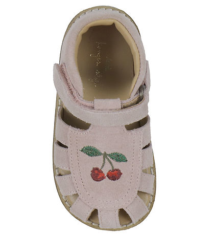 Beautiful Konges Sløjd sandals in dusty pink suede and with embroidered cherries on the foot.