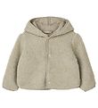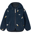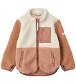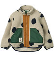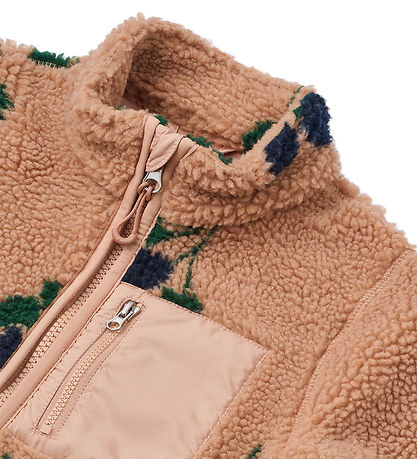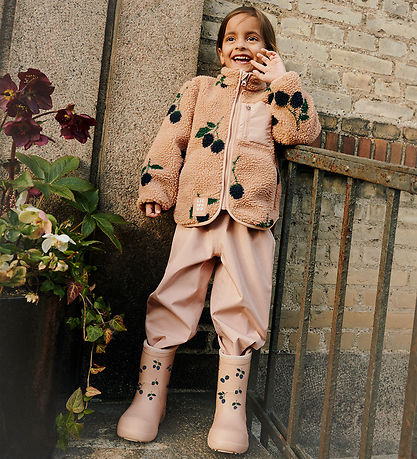 Fine Liewood fleece jacket in pink teddy fleece with a print of large berries.