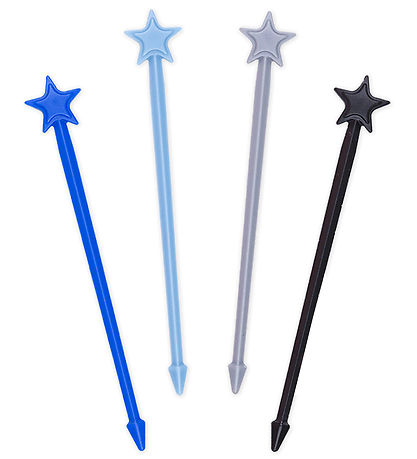 Beautiful Lunch Punch chopsticks with a star at the top and sold as a 4-Pack in the colours dusty blue, dark blue, grey and black.