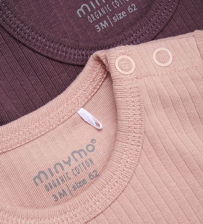 Nice Minymo blouses sold in a 2-Pack in pink and melange dark purple in a ribbed quality.