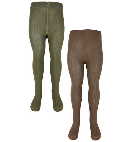 Beautiful Minymo tights sold in a 2-Pack in olive green and brown in a lovely ribbed quality.