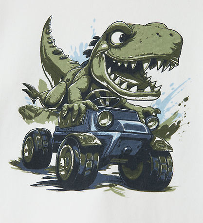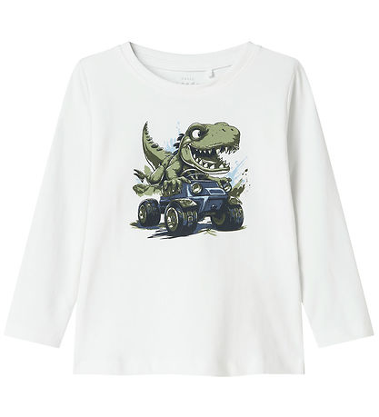 Nice Name It blouse in white with a funny dinosaur and racing car print on the front. The Blouse has long sleeves, which make it suitable for cooler days. Name It ensures comfort and style.