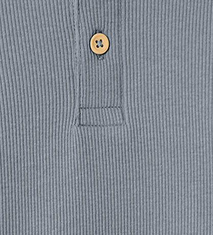 Stylish Name It blouse in a beautiful blue-gray colour with a comfortable ribbed structure. The neckline is round with an elegant post-closure at the front.