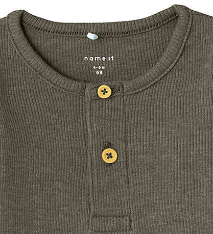 Attractive Name It bodysuit in a deep green colour with long sleeves and button details. It also has a soft structure that provides good comfort for the little ones in everyday life. The Name It bodysuit is both practical and stylish.