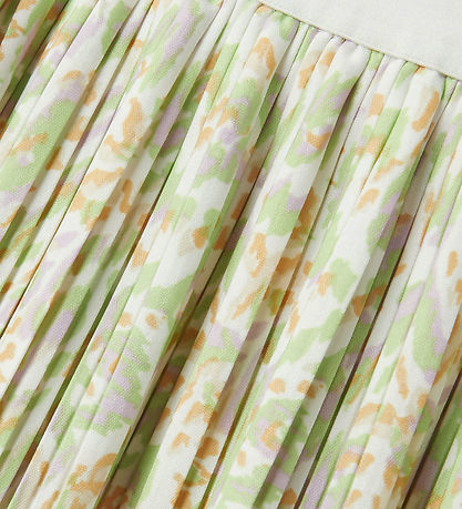 Beautiful Name It skirt in a pleated structure with an abstract floral print in green, purple, white and orange shades.