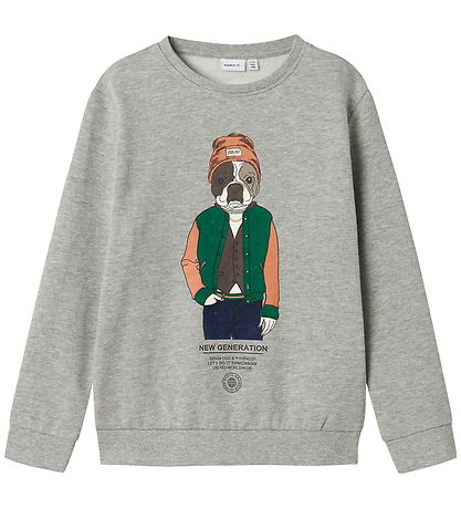 Charming Name It sweatshirt in a grey melange shade with a unique print of a dog in modern clothes.