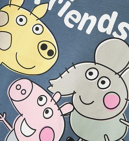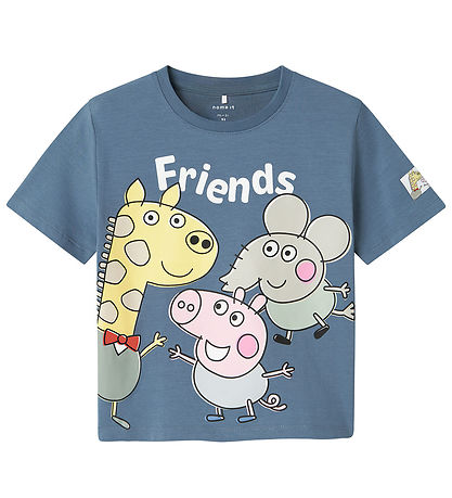 Charming Name It t-shirt in dusty blue with a large Peppa Pig print on the front. The Name It t-shirt has a classic round neckline with a fine ribbed edge and short sleeves.