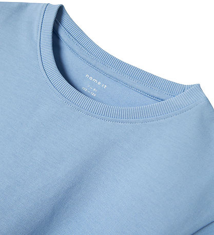Elegant Name It t-shirt in light blue. The Name It t-shirt has a round neckline with a narrow ribbed edge, which adds a nice detail. The soft quality ensures a comfortable experience all day long.