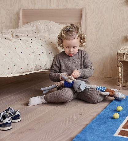 Beautiful OYOY bedding in light beige with an allover print with small, colorful squares.