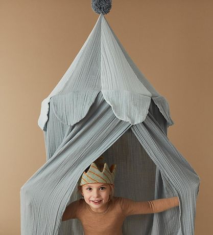 Nice OYOY bed canopy in blue with a nice pompom at the top.