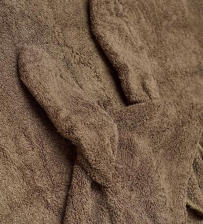 Adorable Pippi Baby towel in soft terrycloth in brown, and it has a hood with two ears.