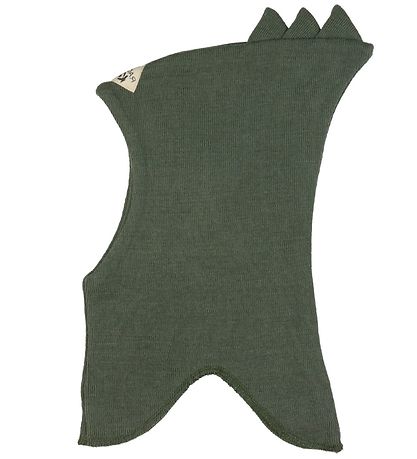 Lovely Racing Kids balaclava in army green with spikes on top and a logo application.