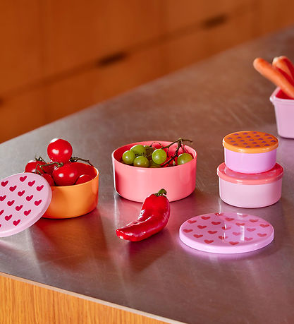 Fine Rice food containers sold as a 4-Pack in different sizes, colour and print: