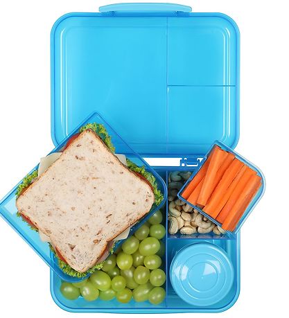 The Sistema lunchbox has a smart lid, which closes with a special clip on one side. Inside, the lunchbox has a large compartment, with two smaller compartments on one side. In the large room, the lunchbox has plenty of space for e.g. a salad, while accessories and dressing can be in the smaller compartments and the associated extra container.